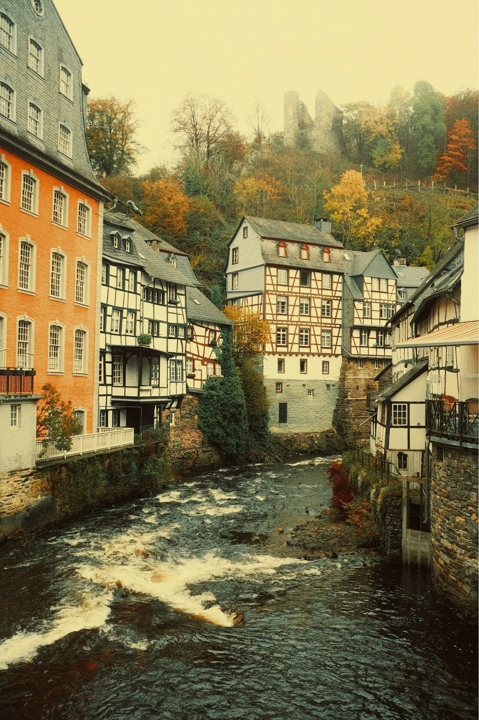 Monschau’nun dar sokaklarında yürüyüş, nehir kenarında fotoğraf molası ve kasabanın meşhur hardal fabrikası ziyareti.